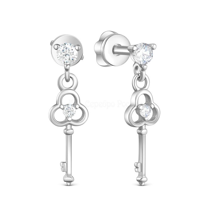 Серьги-пусеты из серебра с фианитами родированные - Ключики 925 пробы 12-1345р