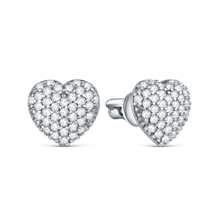 Совместные покупки Уфа Ювелирные украшения и бижутерия Серьги — Серьги-пусеты из серебра с фианитами родированные - Сердца 925 пробы 2-144р200