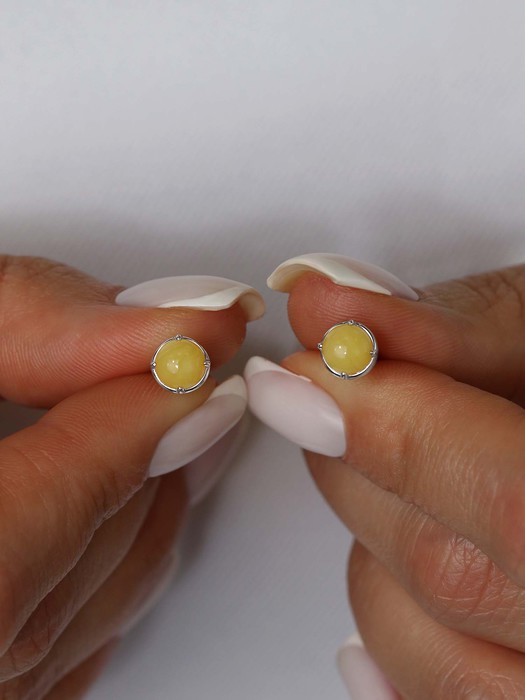 Совместные покупки Уфа Ювелирные украшения и бижутерия Серьги — Серьги-пусеты из серебра с молочным янтарём родированные 4-495р640