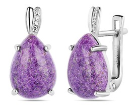 Серьги из серебра с плавленым кварцем цвета дымчатый и фианитами родированные 92