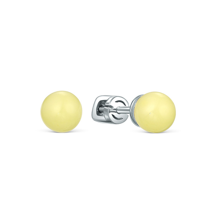 Серьги-пусеты из серебра с молочным янтарём родированные 4-498р640