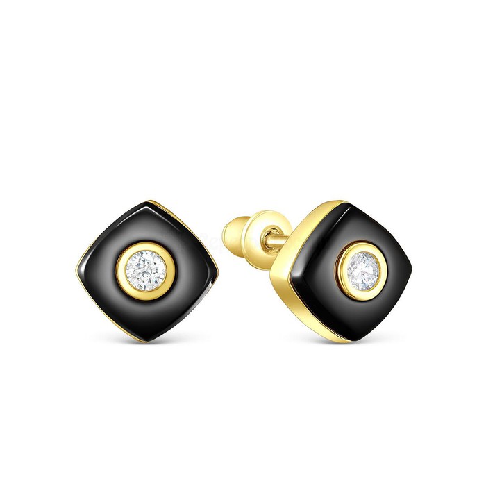 Серьги-пусеты из золочёного серебра с керамикой и фианитами