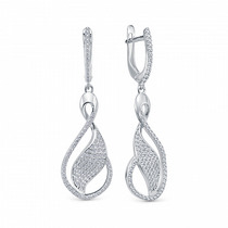 Серьги из серебра с кристаллами цв. бермудский синий родированные