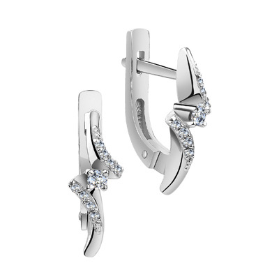 Серьги с фианитом родированные серебро 925*