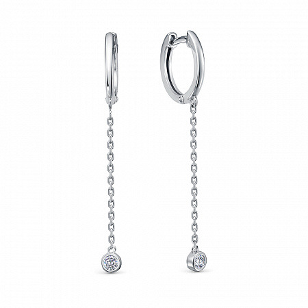 Серьги с фианитом родированные серебро 925*