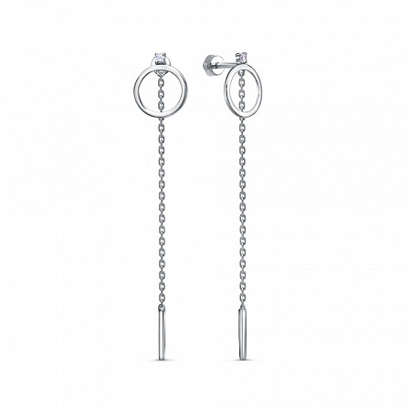 Серьги с фианитом родированные серебро 925*