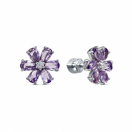 Серьги с фианитом родированные серебро 925*
