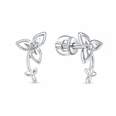 Серьги с фианитом родированные серебро 925*