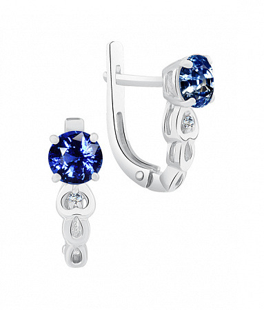 Серьги с фианитом родированные серебро 925*