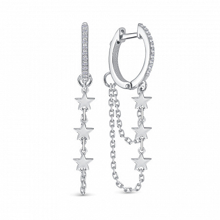 Серьги с фианитом родированные серебро 925*