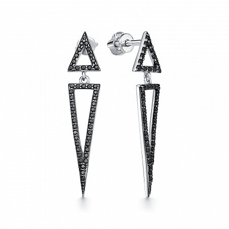 Серьги с фианитом родированные серебро 925*