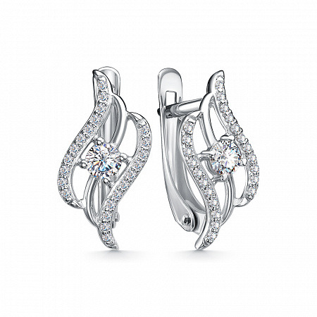 Серьги с фианитом родированные серебро 925*