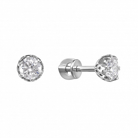Серьги с фианитом родированные серебро 925*