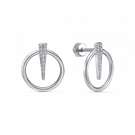 Серьги с фианитом родированные серебро 925*