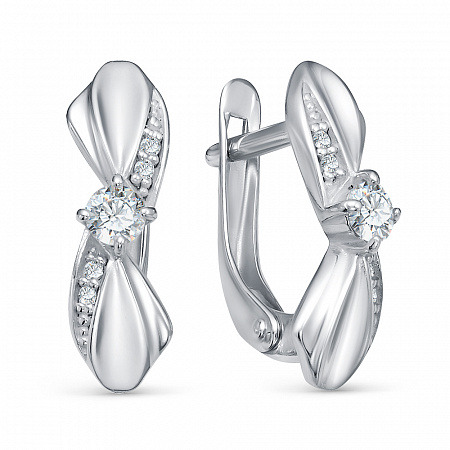 Серьги с фианитом родированные серебро 925*
