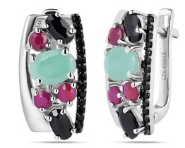 Серьги, изумруд берилл , рубин корунд , сапфир корунд , шпинель, Изобилие