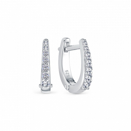 Серьги с фианитом родированные серебро 925*