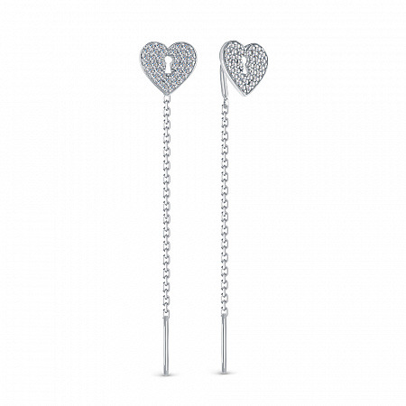 Серьги с фианитом родированные серебро 925*