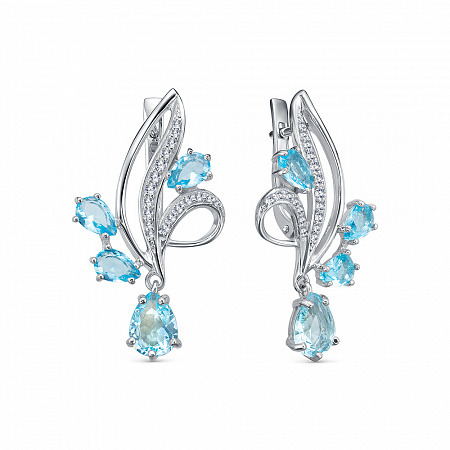 Серьги с фианитом родированные серебро 925*