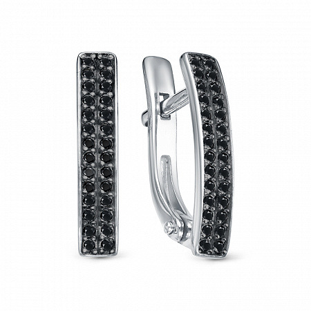 Серьги с фианитом родированные серебро 925*