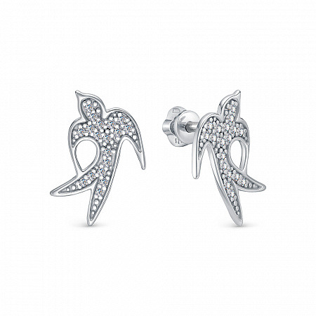 Серьги с фианитом родированные серебро 925*