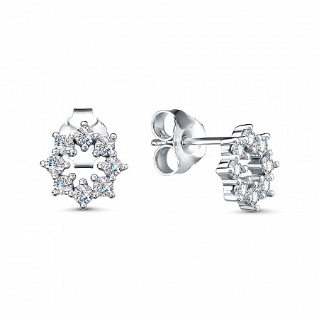 Серьги с фианитом родированные серебро 925*