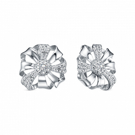 Серьги с фианитом родированные серебро 925*