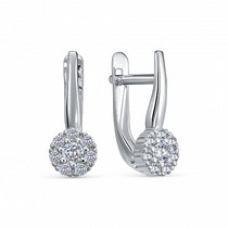Серьги женские из серебра с фианитами, цепью и каффой родированные 925 пробы 280