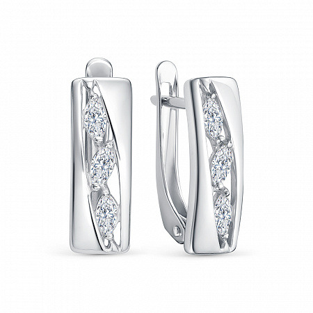Серьги с фианитом родированные серебро 925*