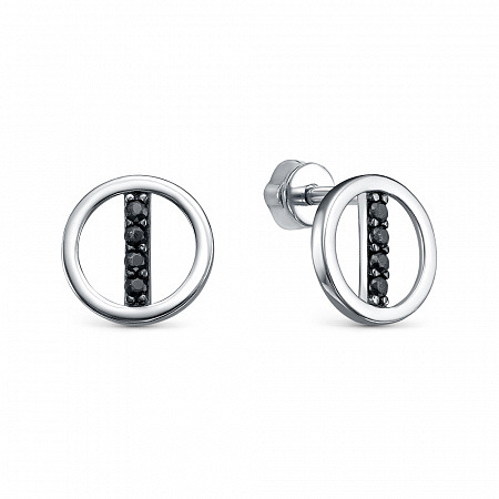 Серьги с фианитом родированные серебро 925*