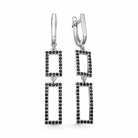Серьги с фианитом родированные серебро 925*