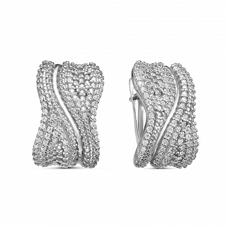 Серьги с фианитом родированные серебро 925*