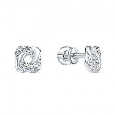 Серьги с фианитом родированные серебро 925*