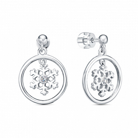 Серьги с фианитом родированные серебро 925*