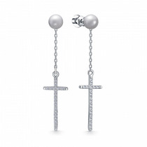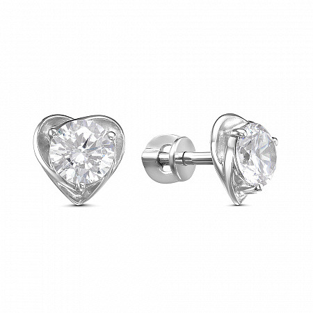 Серьги с фианитом родированные серебро 925*