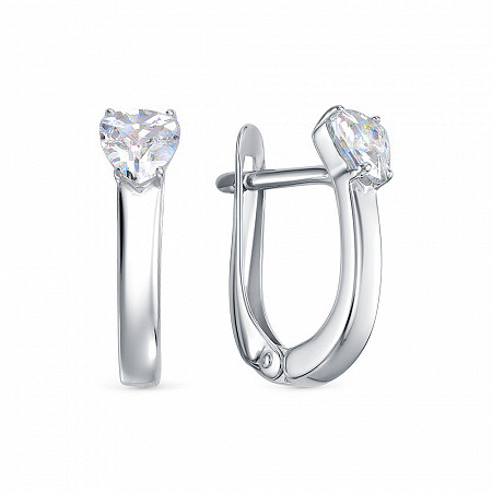 Серьги с фианитом родированные серебро 925*