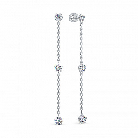 Серьги с фианитом родированные серебро 925*