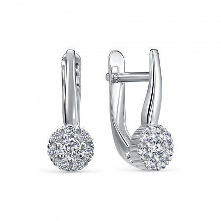 Серьги с фианитом родированные серебро 925*