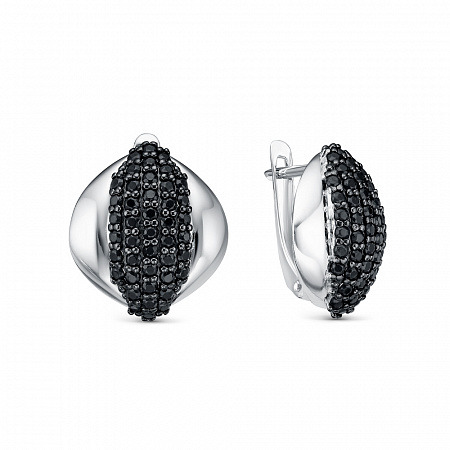 Серьги с фианитом родированные серебро 925*