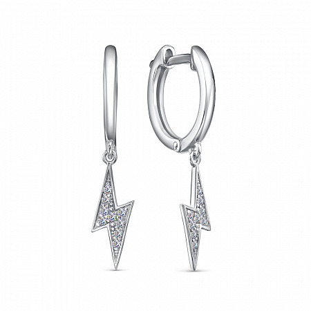 Серьги с фианитом родированные серебро 925*