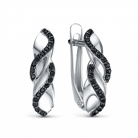 Серьги с фианитом родированные серебро 925*