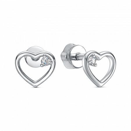 Серьги с фианитом родированные серебро 925*