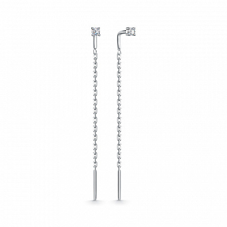 Серьги с фианитом родированные серебро 925*