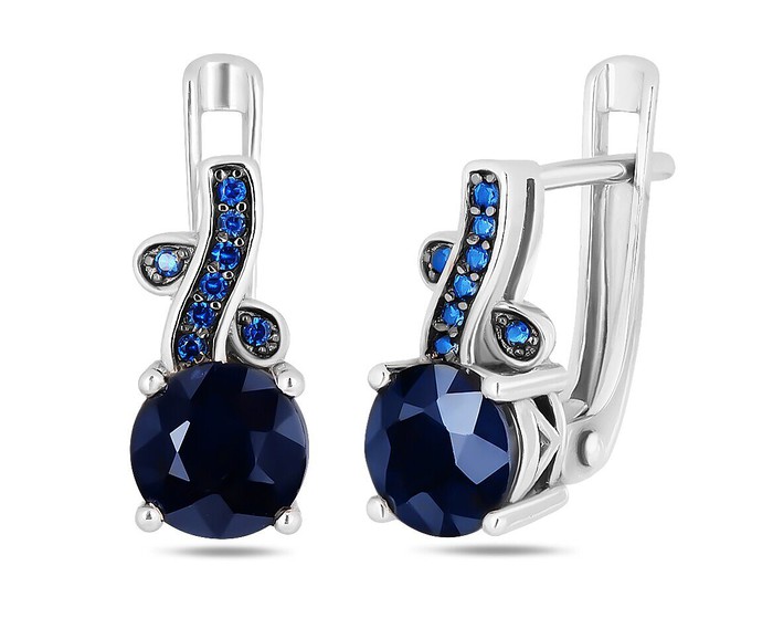 Серьги, арт.657670 Серебро Серебро 925, 3,24 гр., сапфир корунд , наносапфир