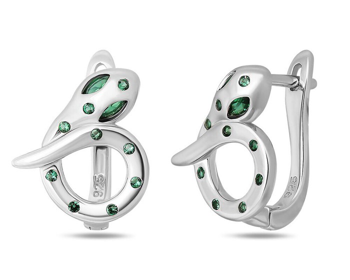 Серьги, арт.657405 Серебро Серебро 925, 2,89 гр., синт.изумруд