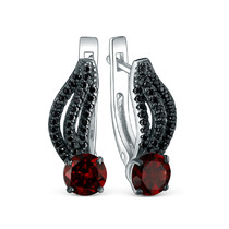 Серьги из серебра с гранатом и чёрной шпинелью родированные 925 пробы 2-533рч404
