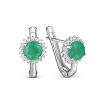 Серьги из серебра с изумрудом и кубическим цирконием родированные 925 пробы GTE-