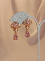 Серьги из золочёного серебра с пл.кварцем цв.лунный камень и фианитами
