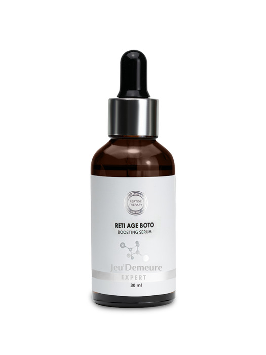 Омолаживающий бустер (серум усилитель) с ретинолом и нейропептидами с ботоподобным действием активизирует синтез коллагена и уменьшает морщины. Активирует синтез коллаген, чтобы стереть тонкие линии и морщины, смягчить кожу и улучшить текстуру и тон. Ретинол уменьшает толщину рогового слоя эпидермиса, увеличивает толщину глубоких слоев эпидермиса, за счет усиления пролиферации кератиноцитов, расположенных у базальной мембраны. Это увеличивает гидрофобные свойства кожи и ее увлажненность. Гиалуроновая кислота увлажняет и восстанавливает кожу.