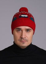Мужская теплая шапка по голове с крупной вязкой и широким, рельефным отворотом. Очень теплая модель для зимы.